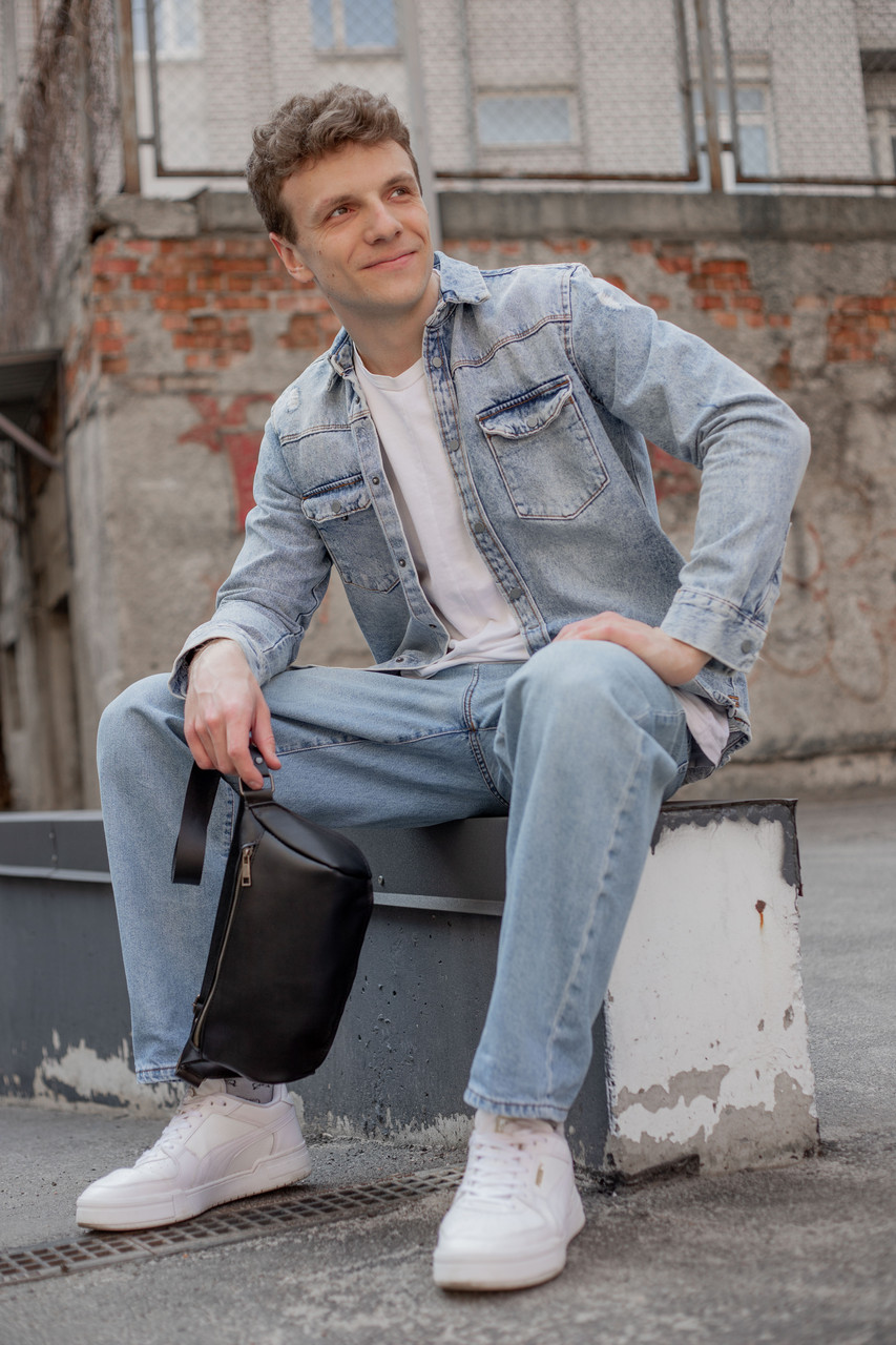 Чоловіча сумка "Модель №56 міні" з натуральної шкіри колір Чорний